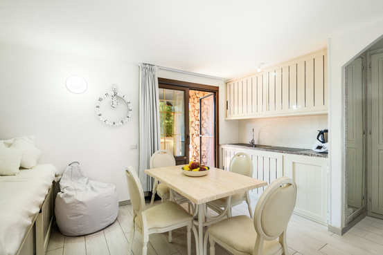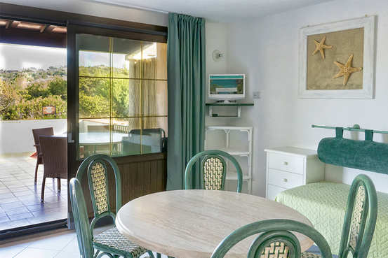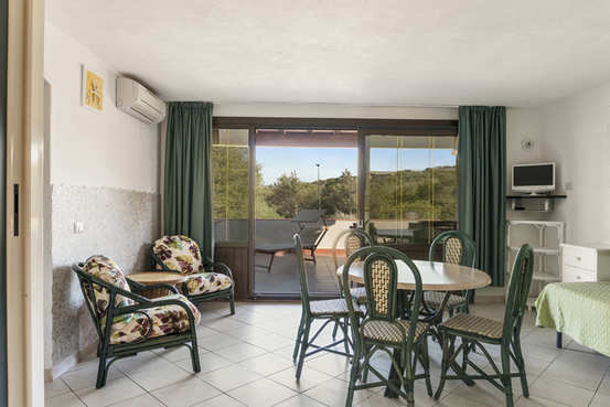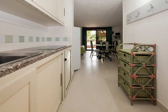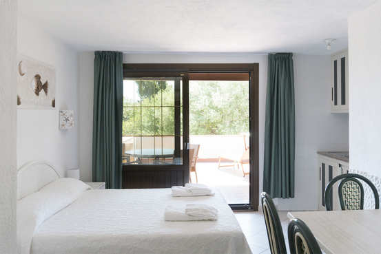 Bilocali 3 o 4 posti letto: camera con letto matrimoniale, soggiorno con 1 / 2 letti singoli, angolo cottura, bagno con doccia, grande veranda esterna o patio esterno con secondo tavolo